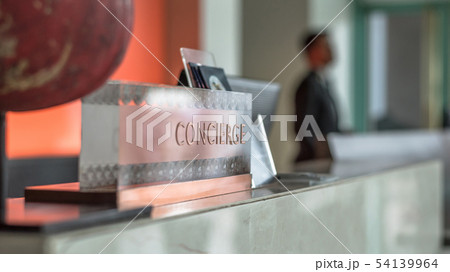 Concierge service desk counter with hotel staff