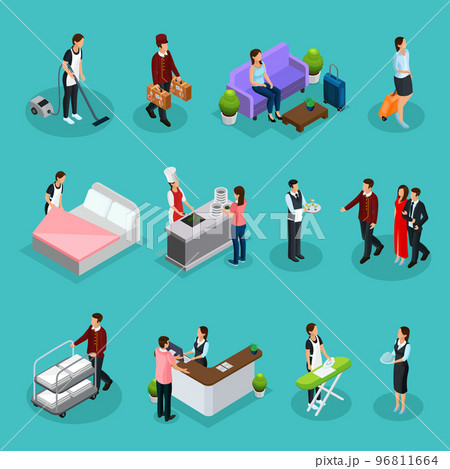 Hotel Service Isometric Icon Set