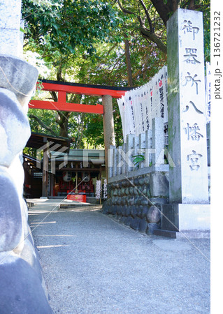 御器所八幡宮 社頭の鳥居と社号標