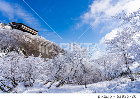 三重県 冬の御在所山頂 レストランの建物 樹氷 霧氷