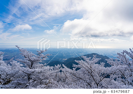 三重県 冬の御在所山頂からの眺め 樹氷 霧氷