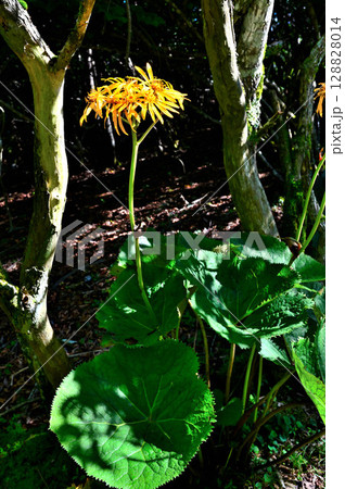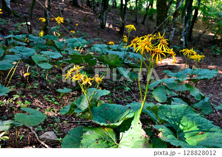 御坂山地の黒岳 森に咲くマルバダケブキの花