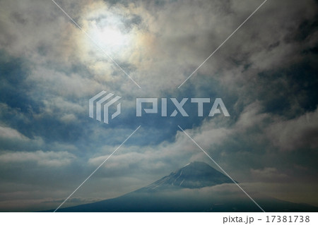 三方分山から見る笠雲を被った富士山