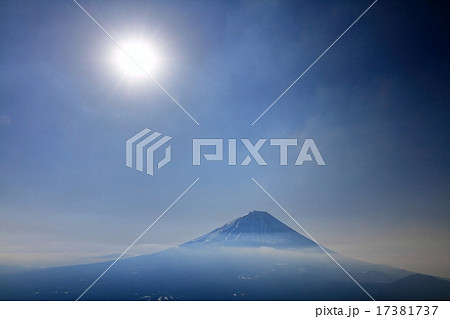 青空と太陽、雲海に浮かぶ富士山(王岳から)
