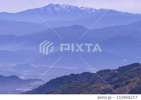 霧ヶ峰高原車山湿原散策道から朝の乗鞍岳