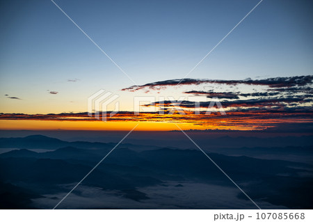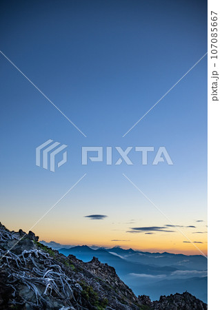 御嶽山の夜明け 御嶽山 絶景 風景 夜明け 空 コピースペース アウトドア 山 レジャー