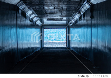 小田原市 令和の新名所 御幸の浜海岸 海へと続くトンネル トンネル出口から 海の風景