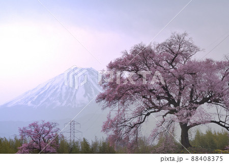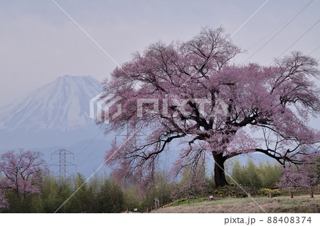 韮崎市神山町、わに塚の桜と富士山