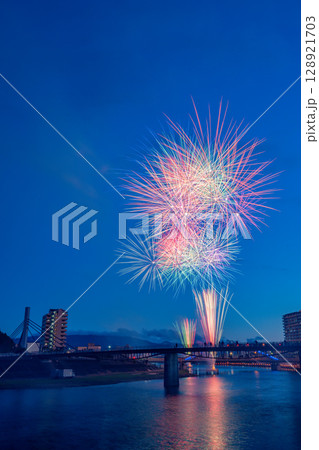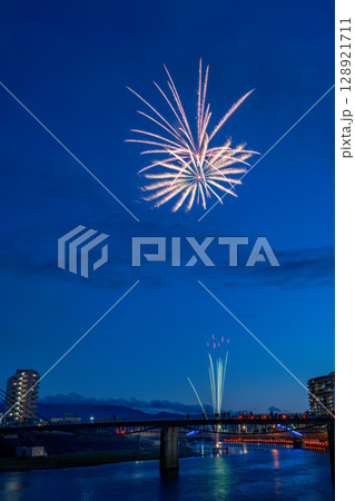 (静岡県)第77回沼津夏まつり・薄暮の空に上がる狩野川花火大会