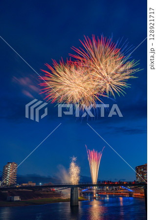 (静岡県)第77回沼津夏まつり・薄暮の空に上がる狩野川花火大会