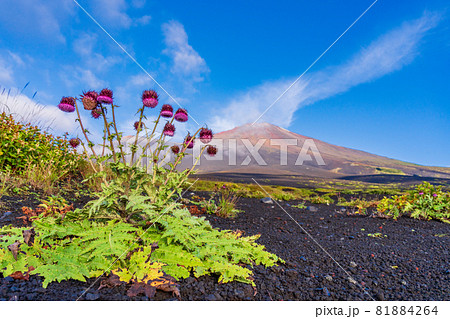 【静岡県】富士山 御殿場口登山道のフジアザミ 朝