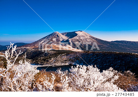 雪化粧の霧島連山韓国岳(からくに岳)と六観音御池