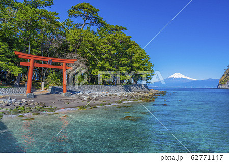 鳥居と駿河湾と富士山 「沼津市戸田 御浜」