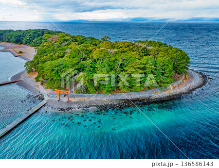 伊豆のくちばし御浜岬 駿河湾の海流によりできた砂嘴(さし)小石のビーチ アカウミガメが産卵