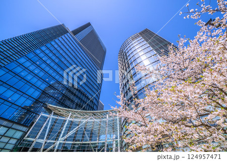 日本の東京都市景観 神田淡路町二丁目のワテラスなどを望む。新しい時代に、希望の光=10日
