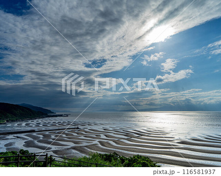 有明海に浮かぶ幻想的な砂紋景勝風景 「自然の神秘 日本の渚百選」日本・九州・熊本県(御輿来海岸)