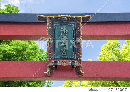 御霊神社境内 松ノ木神社 朱鳥居 扁額(大阪市中央区淡路町)