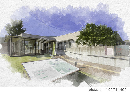 水彩画風 妻木晩田遺跡 弥生の館むきばんだ 鳥取県大山町