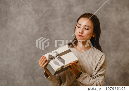 プレゼントを手にする若い女性