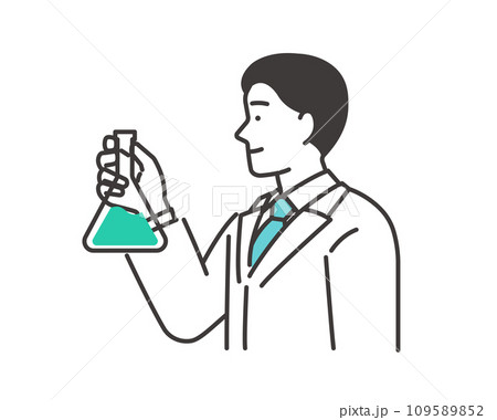 三角フラスコをもって実験をする研究者のベクターイラスト素材