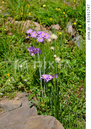 中国 青海省東中国 四川省 部 徳啄山峠に咲くサクラソウ科サクラソウ属 Primula nutans