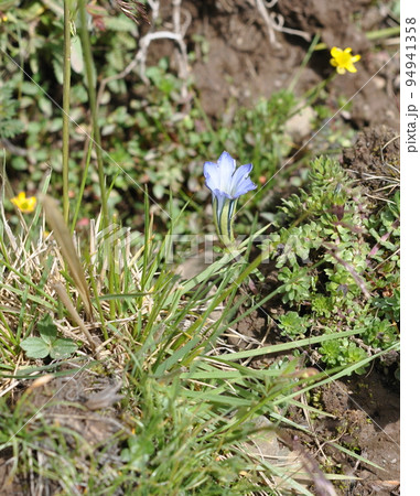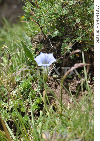 中国 青海省東部 徳啄山峠に咲くリンドウ科リンドウ属Gentiana hexaphylla