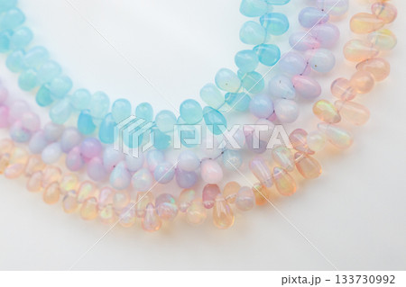 パステルカラーの天然石ビーズ — オパールのように輝く優しい色合いのジュエリー素材