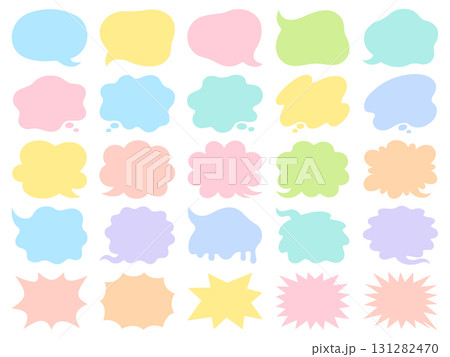色々な形のカラフルな吹き出しのフレームイラストセット