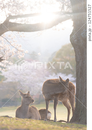 春の日差しと鹿たちの穏やかなひととき