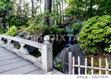 【東京】初春の西新井大師 弁天池にかかる石橋と滝