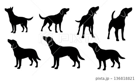 Black Solid Scent Tracking Dogs Silhouettes Set of Six on White Background