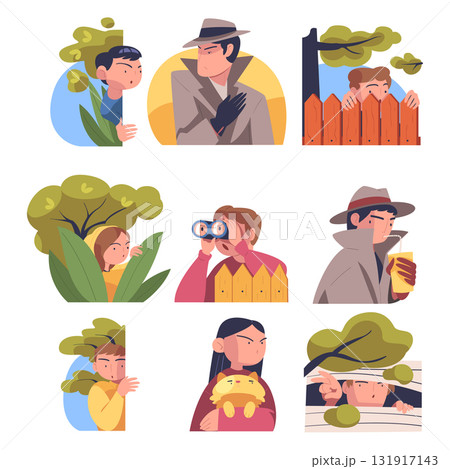 People Character Spying, Observing and Sneaking Looking and Peeping Out Vector Set