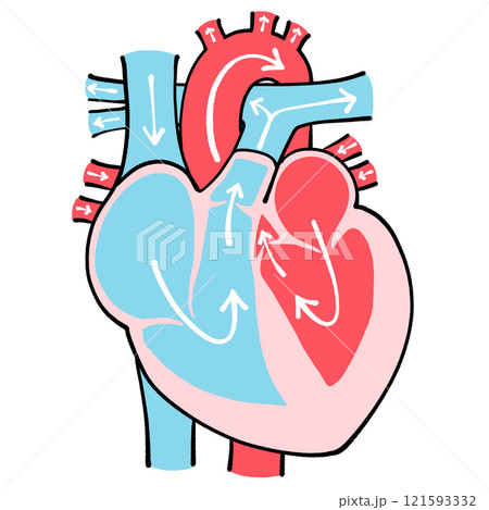 心臓の細かい構造と血液の流れ・各部位の名称がわかりやすい断面イラスト