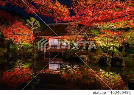 【AI生成画像】京都庭園夜景 ライトアップで広がる秋模様