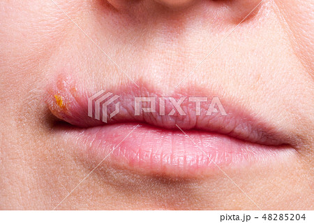Herpes on the lip close up macro