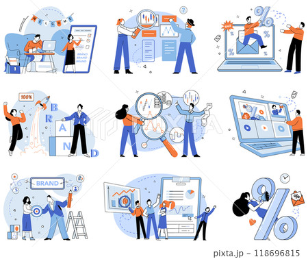 Brand vector illustration. Signs, breadcrumbs, guide consumers on journey discovery within brand Business strategy, game plan, positions brand for success in competitive arena Logo, flag