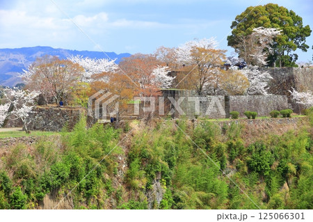 【大分県】晴天の岡城 中川但見屋敷跡と満開の桜