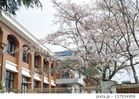 北広島町小学校に咲く桜の景色