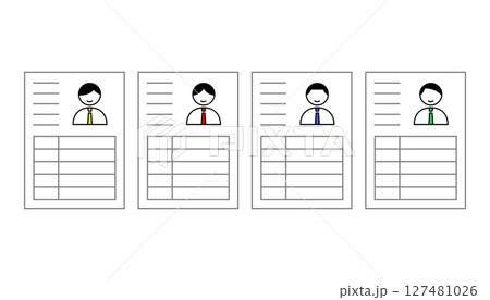 ネクタイに様々な配色が施された人物の履歴書のアイコンセット