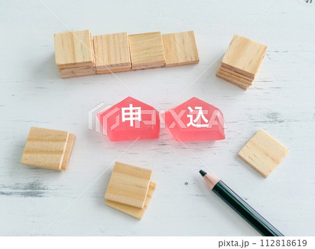 「APPLY」と書かれた積み木とペン、ノート、人の手