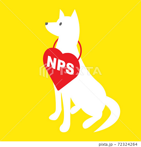 マーケティングに使えるNPSと白い忠犬のイラスト Loyal Dog with NPS heart