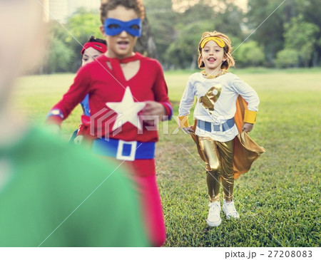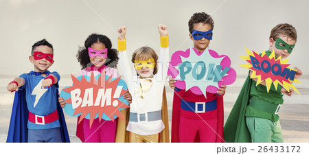 Superheroes Cheerful Kids Expressing Positivity Concept