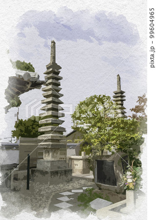 水彩画風 西方寺 境内 奈良県奈良市