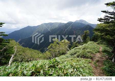 群馬県栃木県 県境 ぐんま百名山 温泉ケ岳登山道から日光白根山方面を見る