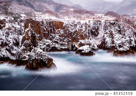 【新潟県_尖閣湾】幾万年の荒波の浸蝕で生まれた荒削りの断壁 春