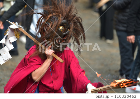 神積寺の鬼追い式 松明持って見物人を追い回す山の神
