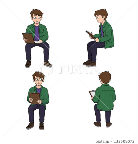 Boy sitting at wooden desk reading book focused on study education learning vector illustration