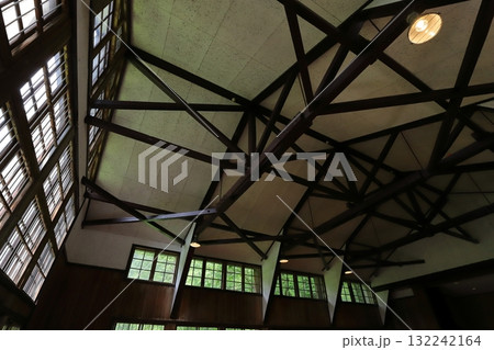 秋田県田沢湖散策 思い出の潟分校 窓が素敵な体育館