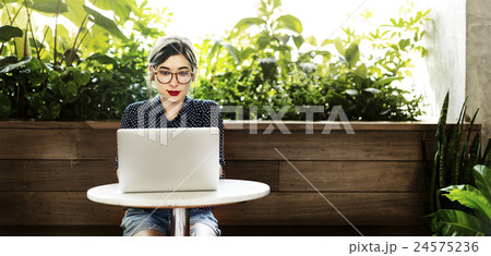 Computer Internet Cafe Casaul Thinking Browing Concept