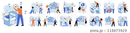 Thought process vector illustration. Learning enhances intelligence applied in thought process Strategy shapes roadmap for creative problem-solving Ideas take flight in realm clear thought process